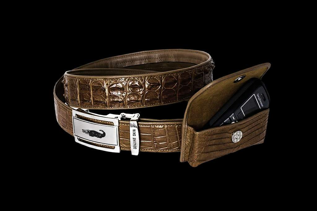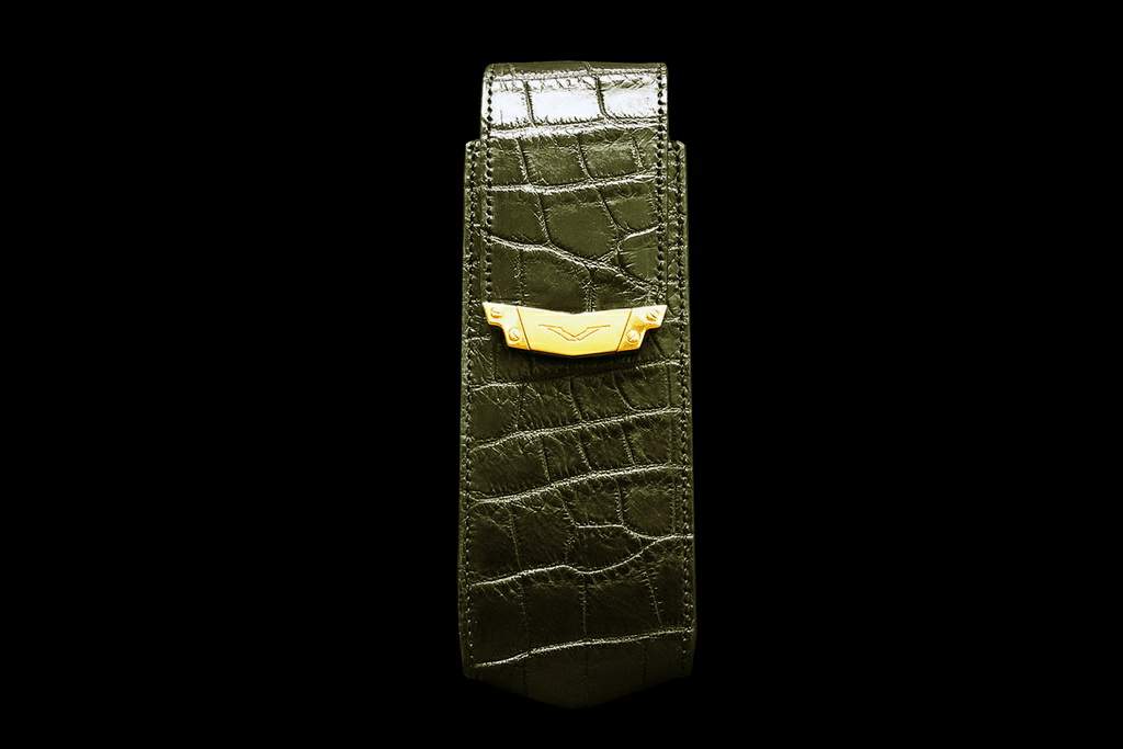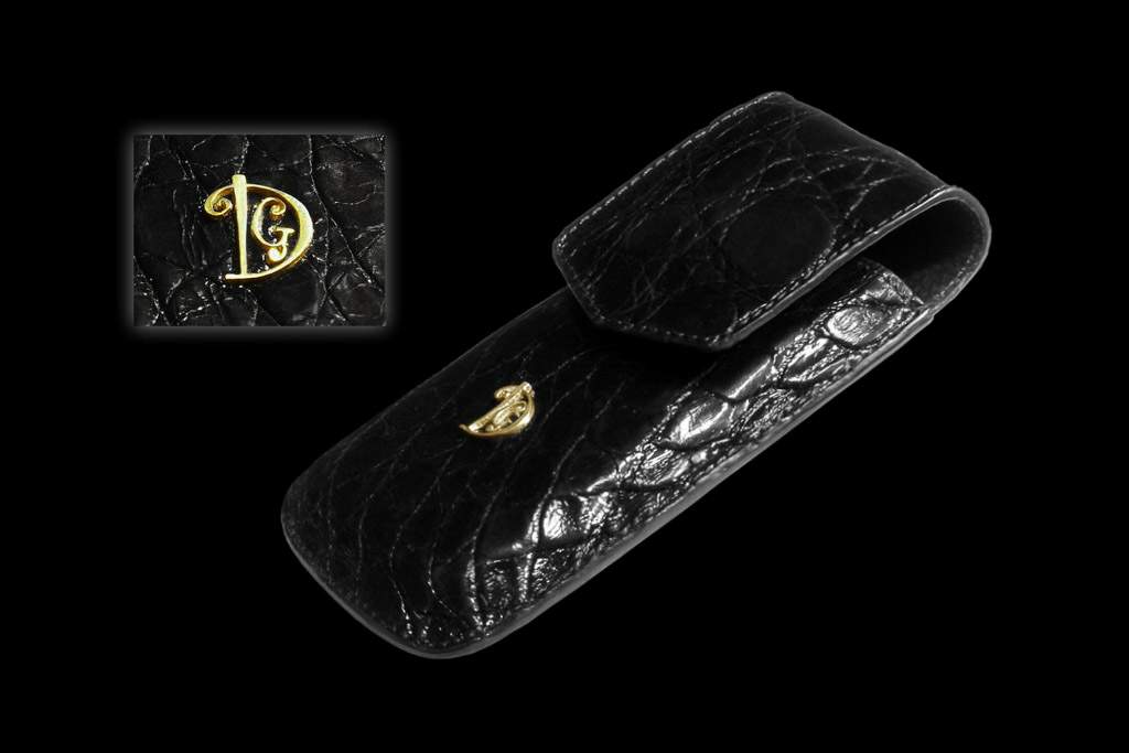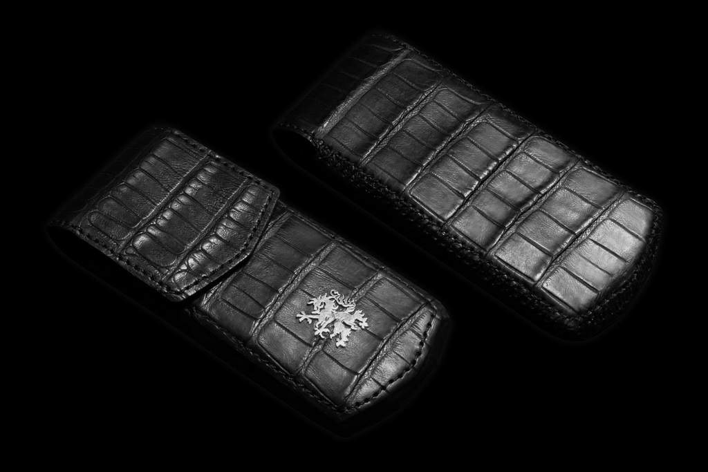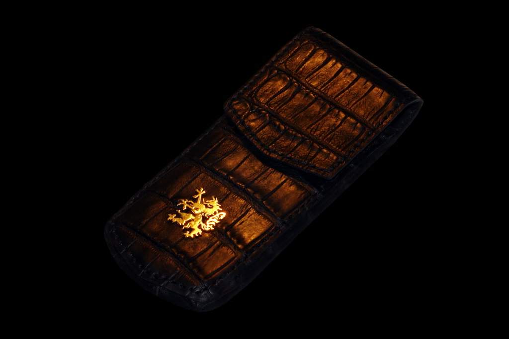 in alligator skin with coat of arms of cast gold of 777k.In individual orders all types and colors of exotic leather