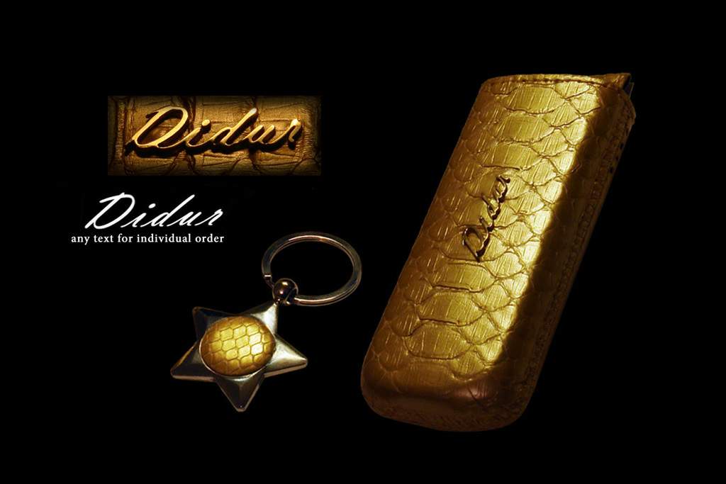 alligator, shark, ostrich, eel, cobra etc. For individual order inlaid made of gold - any initials,