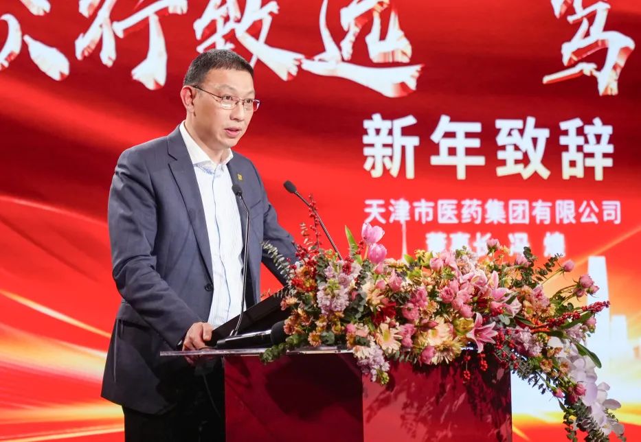 集团董事长冯煌发表致辞,他通过一幅幅生动的图片带领与会人员一同回顾了集团2024年坚定守正创新、坚决品质夯基 、坚持科学管理的前行足迹 ,并对集团2025年发展提出了几点要求 :要全面贯彻落实党的二十届三中全会精神和习近平总书记视察上海、天津重要讲话精神,秉持 “干字当头 、奋力一跳” 的精气神,积极培育新质生产力;保持昂扬的斗志和饱满的热情,抓住机遇、迎接挑战;以市场拓展为驱动 ,以科技创新为赋能 ,探索中国式现代化的Z6尊龙凯时实践 ;履行企业社会责任 ,积极助力社会公益活动,为健康中国战略贡献力量 ,笃行致远 ,共创天津医药美好未来 。